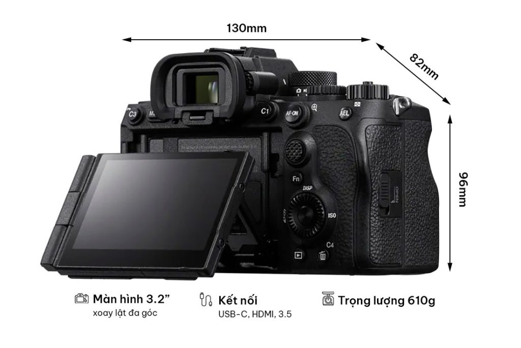 | Trọng lượng (Body+pin+thẻ nhớ) | ~658g | ~695g | A7V nặng hơn một chút do cơ chế màn hình và tản nhiệt tốt hơn |